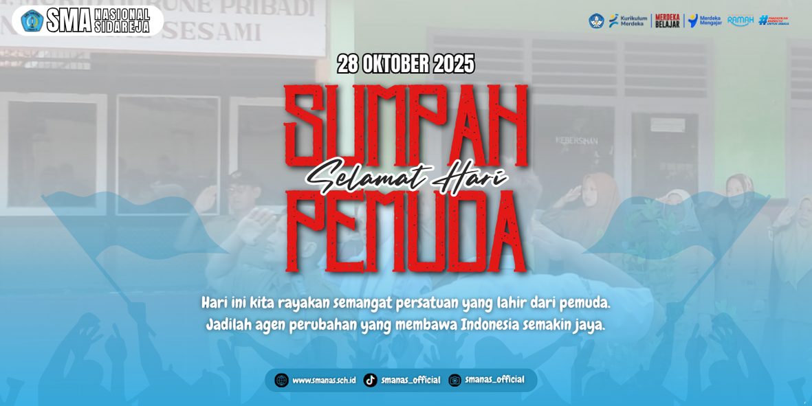 Hari Sumpah Pemuda, yang diperingati setiap tanggal 28 Oktober, adalah momen bersejarah yang mengingatkan kita akan semangat persatuan dan perjuangan pemuda Indonesia. Pada hari Selasa, 28 Oktober 2025, SMA Nasional Sidareja dengan bangga akan menggelar peringatan Hari Sumpah Pemuda dengan tema “Bersatu dalam Inovasi, Berprestasi untuk Bangsa”. Tema ini mencerminkan semangat semboyan sekolah kita, Bersinar dengan Prestasi, Maju Bersama Teknologi, yang mengajak generasi muda untuk terus berkarya dan memanfaatkan teknologi demi kemajuan bangsa.